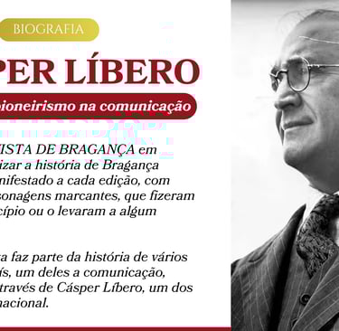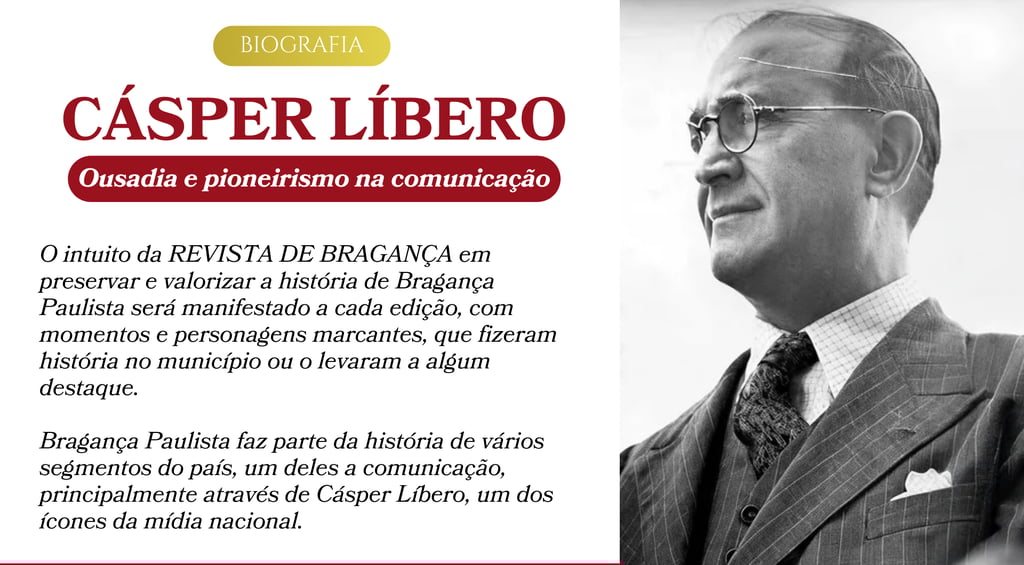 Nascido em Bragança Paulista, em 2 de março de 1889, Cásper Líbero era um homem visionário. Era filho do médico e político republicano Honório Líbero e de Dona Zerbina, uma das mais respeitadas senhoras bragantinas; irmão de Nelson e José. Dotado de uma grande visão de marketing e ampla sensibilidade jornalística, revolucionou o conceito de jornalismo no País.