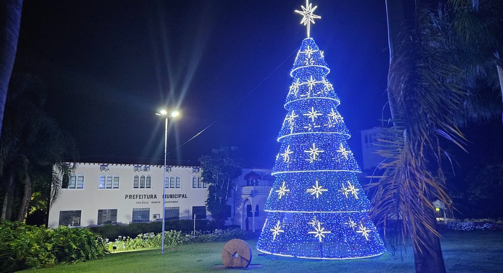 Árvore em frente ao Paço Municipal foi uma das poucas decorações de Natal na cidade